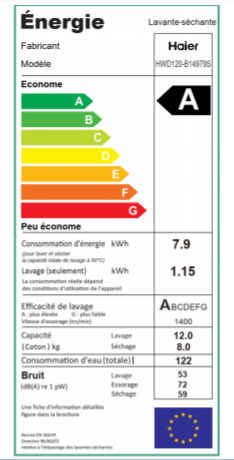 Étiquette énergétique : Étiquette énergétique du produit